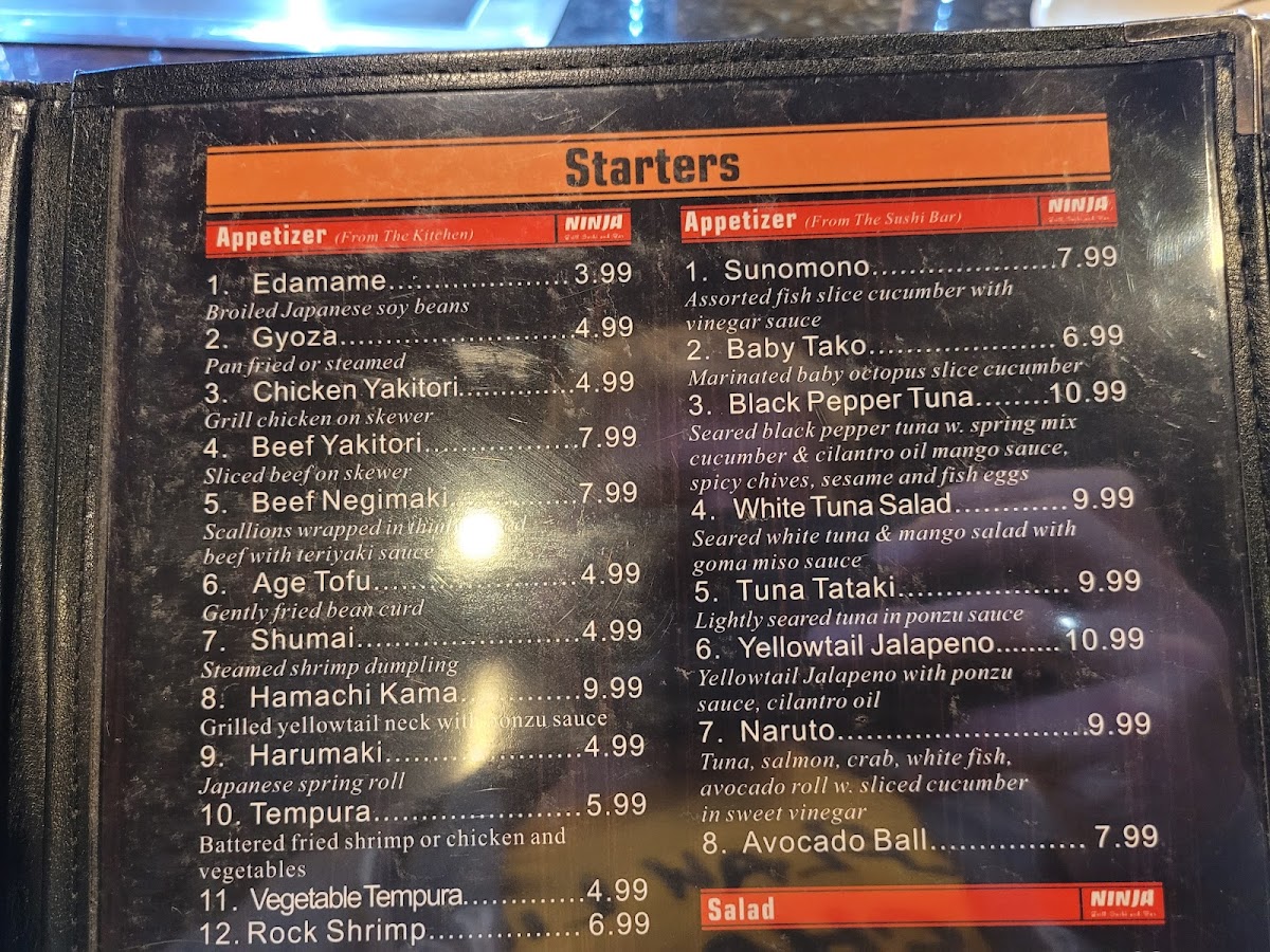 Ninja Japanese Restaurant Menu